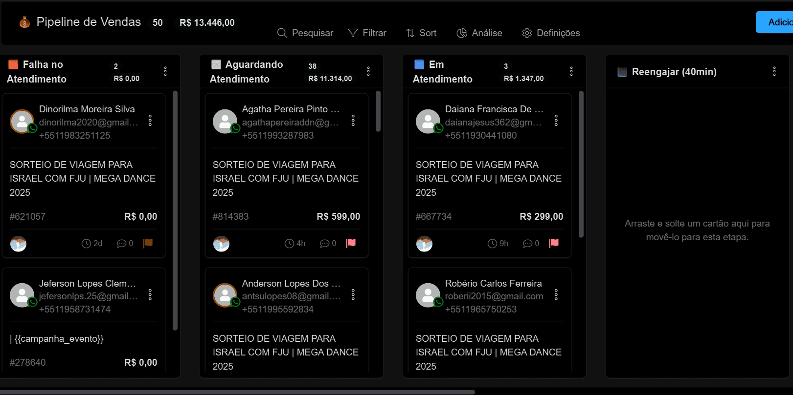 CRM intuitivo para gerenciar vendas e leads de forma simples e eficiente.
